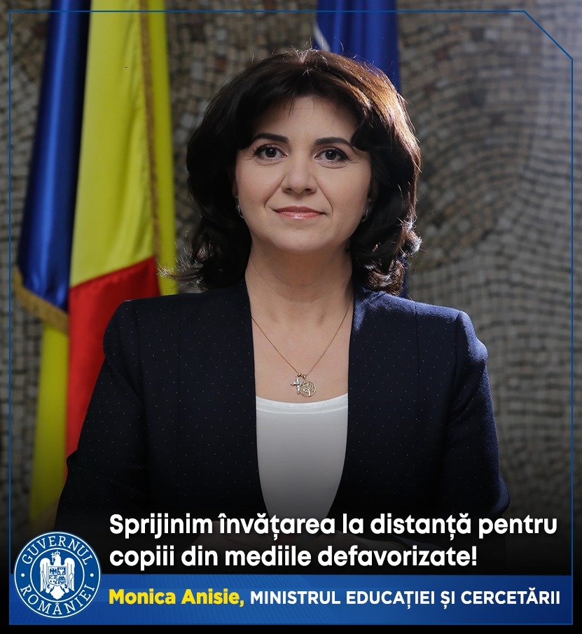 „Am solicitat inspectoratelor școlare să centralizeze situația elevilor care nu dispun de echipamentele necesare participării la cursurile online, în contextul pandemiei COVID-19. În acest moment, în România, numărul estimat de elevi care au nevoie de aceste dispozitive electronice este de 250.000. Odată cu achiziționarea acestora, va fi facilitată învățarea la distanță și pentru copiii din mediile defavorizate”, a declarat Monica Anisie, ministrul educației și cercetării.
