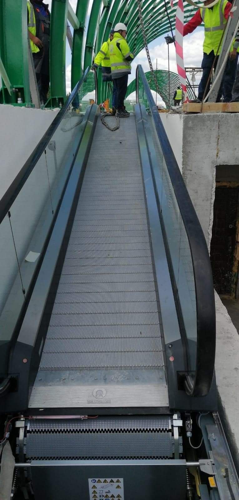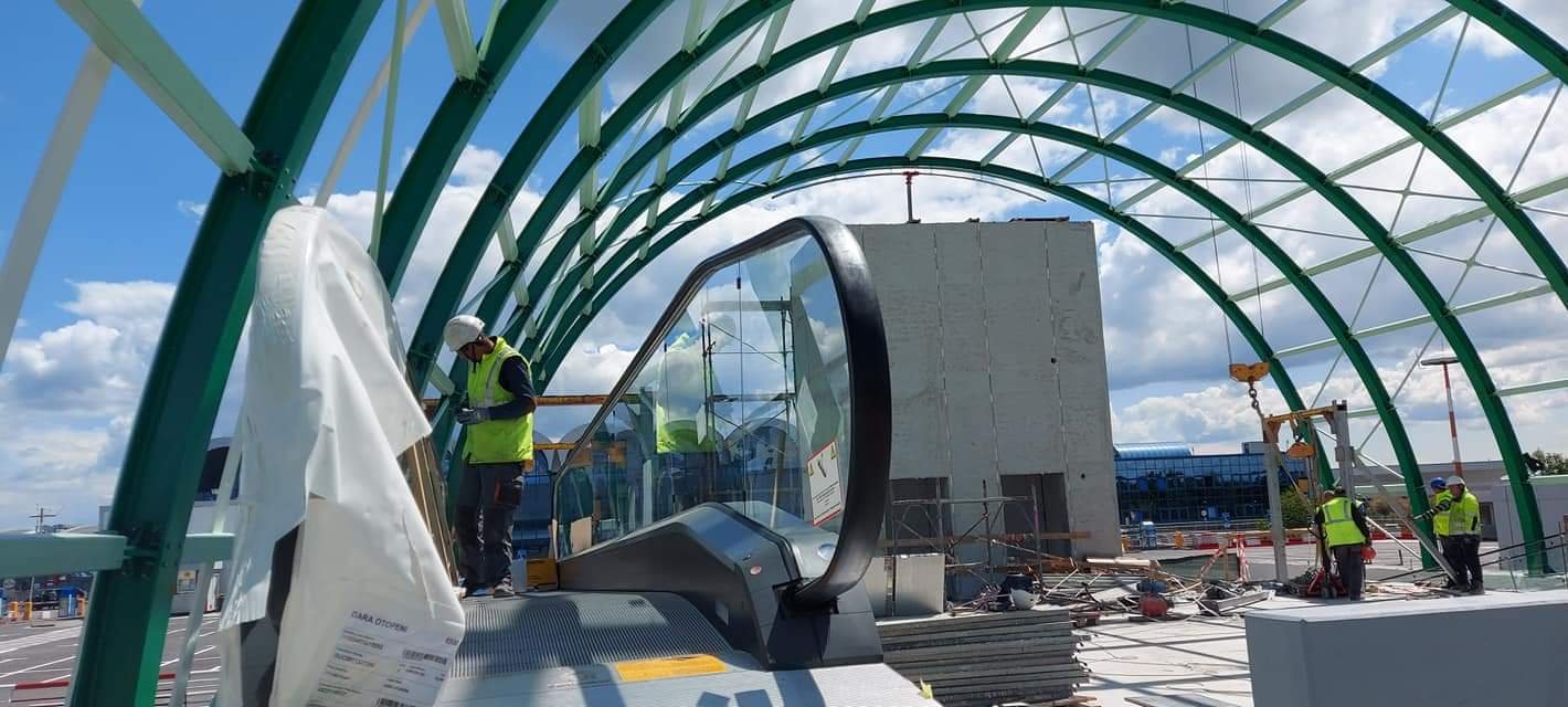 Între DN 1 și Terminalul Sosiri, constructorul a montat linia de cale ferată și traversele, până la noua stație de călători, în dreptul peroanelor, la capătul cărora au fost montate și s-au făcut probe de funcționare la cele două scări rulante. În ceea ce privește cupola stației de călători, aceasta va fi vitrată pe toată lungimea structurii, din sticlă acrilică transparentă.