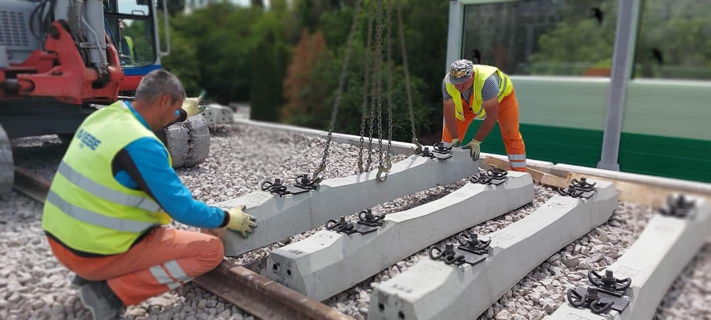 Constructorul SC WIEBE continuă lucrările de suprastructură și infrastructură, iar din zona Odăile, unde stadiul de execuție pe partea de infrastructură este de 70%, a început montarea liniei de cale ferată și a traverselor.
