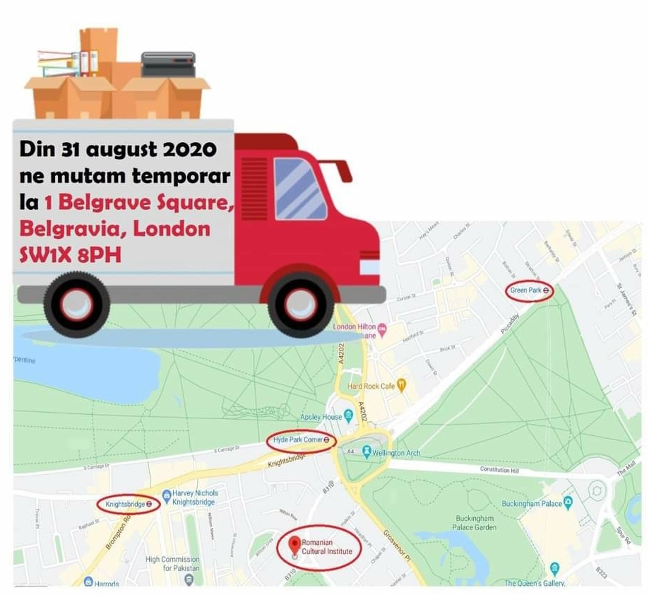 ”Începând cu data de 31 august 2020, Secția consulară a Ambasadei României la Londra își va înceta permanent activitatea la sediul din 344 Kensington High St, Kensington, London W14 8NS, urmând a presta, temporar, servicii consulare în clădirea Institutului Cultural Român din 1 Belgrave Square, Belgravia, London SW1X 8PH.