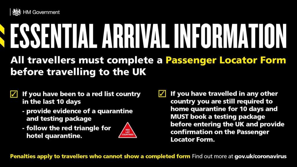 Să efectueze o perioadă de 10 zile de carantină la o adresă declarată înainte de sau la sosire sau, în cazul persoanelor sosite din țările aflate pe lista roșie (România nu se află pe #redlist) la un hotel stabilit de autoritățile britanice.
