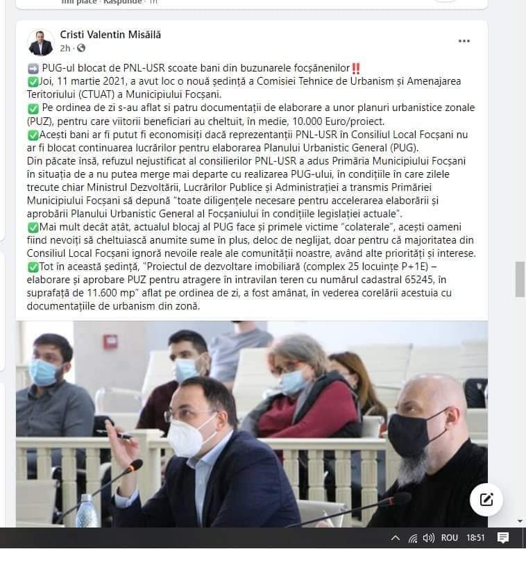 Am intervenit și am amintit domnului primar că în adresa oficială se specifică termenul limită de finalizare anul 2023, iar supunerea la vot în orice ședință se poate face printr-un proiect distinct, nu într-o listă de alte proiecte pe care suntem nevoiți să le votăm calup. Dacă e nevoie de hârtie, aducem noi, chiar mă angajez să plantez și 10 arbori.
