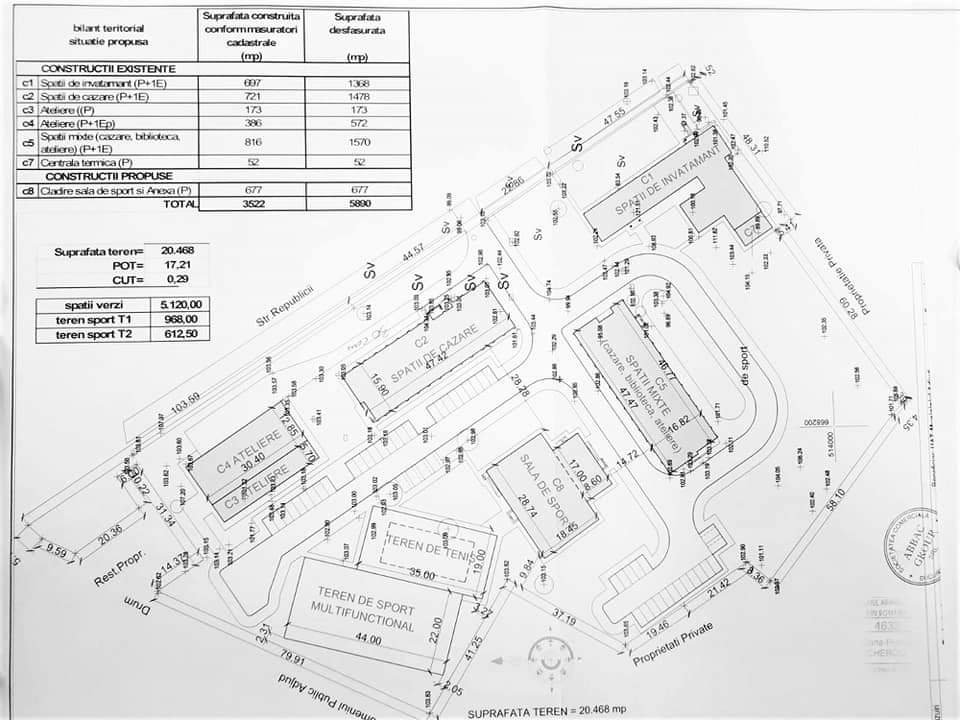 – Reabilitarea termică, energetică, schimbarea acoperișului, echiparea funcțională cu panouri solare și dotarea corespunzătoare a spațiilor de învățământ conform destinațiilor (săli de clasă/cabinete/laboratoare) – Corp C1/Clădire spații învățământ;