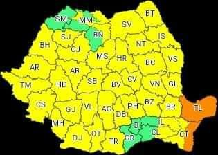 Începând de astăzi, de la ora 12.00, intră în vigoare o atenționare meteorologică COD GALBEN de ploi însemnate cantitativ și instabilitate atmosferică temporară accentuată, valabilă până marți la ora 21.00.
