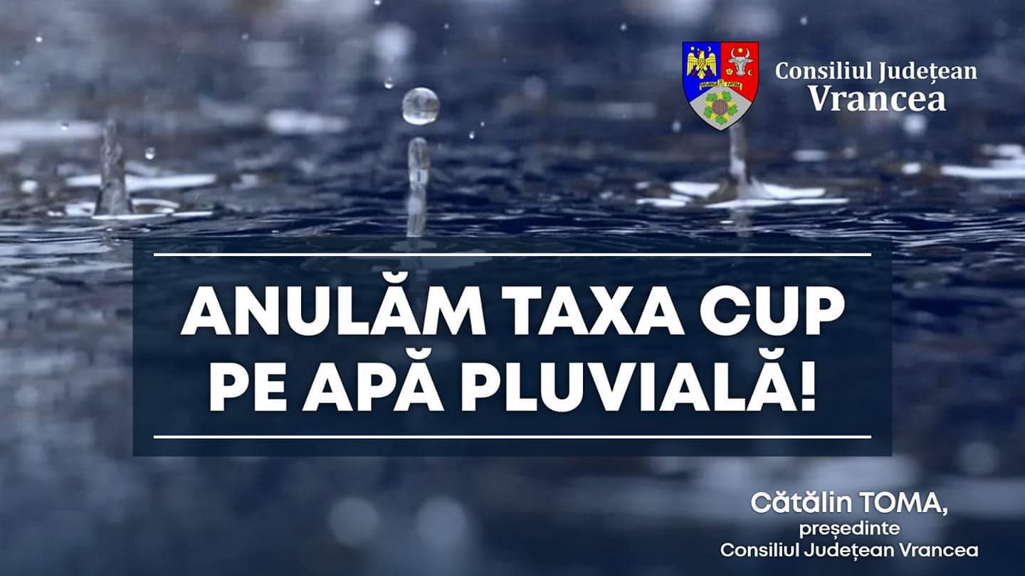 În calitate de președinte al Consiliului Județean Vrancea și al Asociației de Dezvoltare Intercomunitară (ADI) Vranceaqua, Cătălin Toma a inițiat un proiect prin care să fie eliminată taxa CUP pentru apa pluvială de pe facturile persoanelor fizice și ale asociațiilor de proprietari.