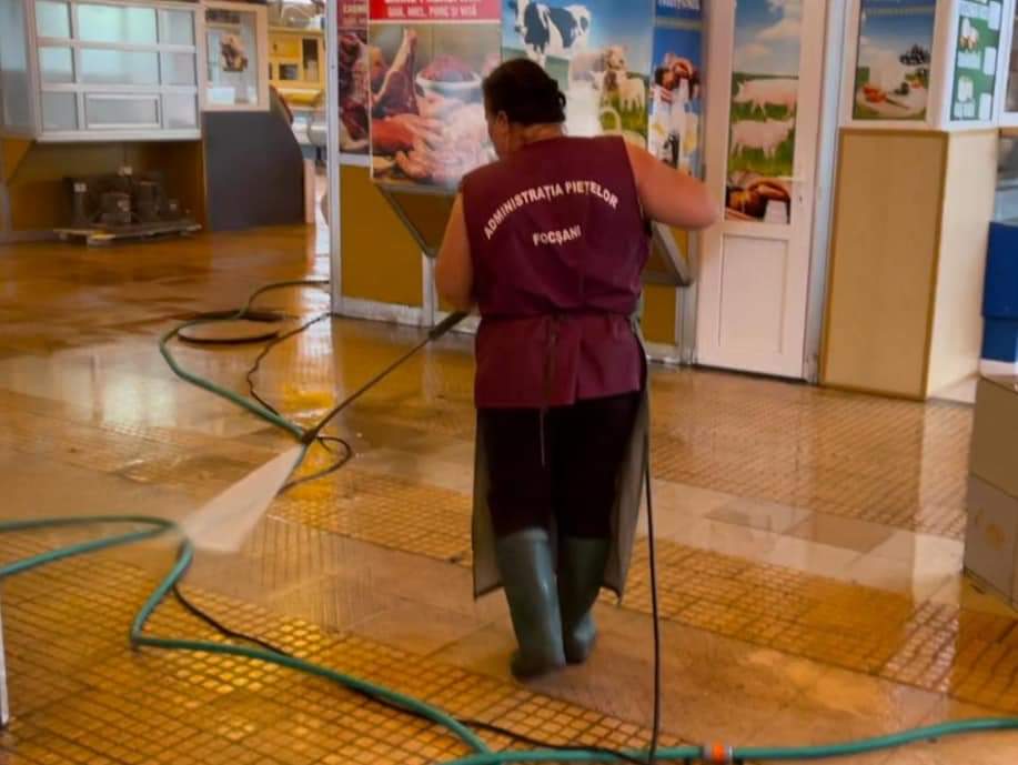 Astăzi, 5 iulie 2021, Primăria Municipiului Focșani, prin SC CUP Salubritate SA, împreună cu Administrația Piețelor Focsani, a organizat o amplă acțiune de curățenie în zona Pieței Moldovei. Pe perioada curățeniei generale piața Focșani şi-a suspendat activitatea, inclusiv activitatea comercială din spațiile închiriate agenților economici.