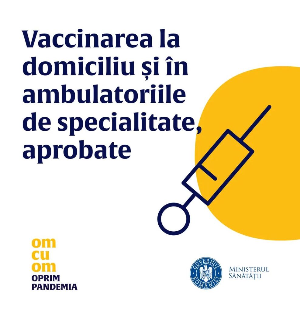 „Am creat cadrul legal pentru ca un număr semnificativ de persoane să poată fi imunizate de către medicul de familie la domiciliu. Este o măsură ce are drept scop stimularea vaccinării și protecția cu precădere a persoanelor vârstnice, nedeplasabile sau mai greu deplasabile. Pentru vaccinarea la domiciliu, am crescut tariful cu 50%, la 60 de lei/inoculare, de la 40 de lei/inoculare cât este la cabinet, diferență menită să acopere cheltuielile de deplasare. De asemenea, pentru pacienţii cu boli cronice poate începe vaccinarea în ambulatoriile de specialitate, tocmai pentru a proteja mai bine acele persoane care au şi cel mai mare risc de a se îmbolnăvi şi a dezvolta complicaţii în caz de infecţie cu SARS-CoV-2”, a declarat ministrul Sănătății, Ioana Mihăilă.