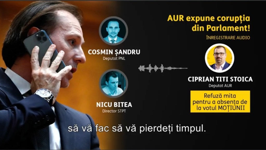 Deputatul partidului AUR, Ciprian Titi Stoica, a fost abordat de 2 apropiaţi ai guvernului, Cosmin Șandru deputat PNL şi Nicu Bitea- director STPT, în înregistrare se arată cum deputatul PNL Cosmin Sandru i-a oferit funcții în deconcentrate pentru apropiați lui Stoica, pentru ca acesta să nu se prezinte la votul moțiunii, și i-a spus că va negocia direct cu Florin Cîțu eventualele beneficii.