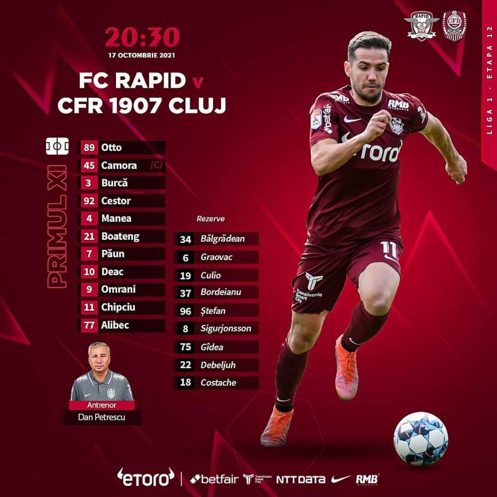 CFR Cluj: Hindrich – Cr. Manea, Burcă, Cestor, Camora – A. Păun, Boateng, C. Deac – Chipciu, Alibec, Omrani