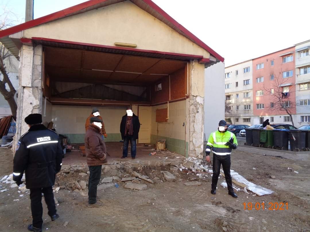 La data de 19.01.2022, polițiștii locali din cadrul Compartimentului „Disciplina în Construcții” au participat la o acțiune de demolare a unui garaj construit în anul 1990 pe domeniul public al municipiului Focșani, fără autorizație de construire, asigurând protecția perimetrului și a libertății de acțiune a personalului care a participat la acestă operațiune.