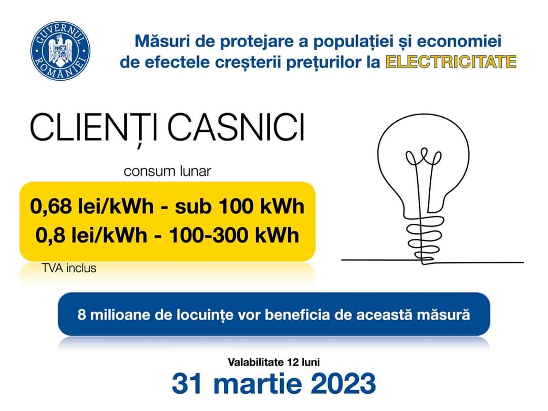 Consumatorii casnici de electricitate din opt milioane de locuințe vor beneficia de sprijin pentru plata facturilor. Măsuri similare sunt destinate și consumatorilor de gaze naturale.