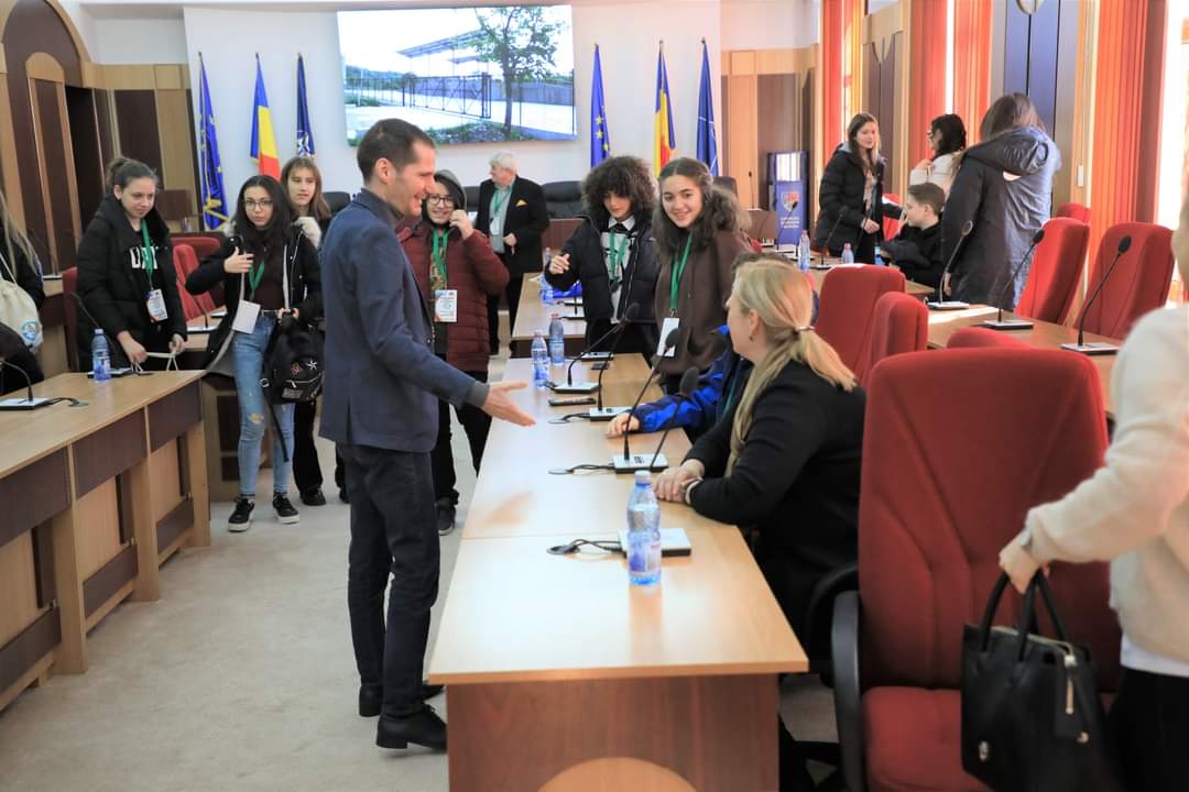 Consiliul Județean Vrancea a primit astăzi vizita unei delegații de elevi și profesori din Ungaria și Turcia, în cadrul proiectului de cooperare educațională internațională Erasmus + „Fortune in garbage”, derulat de Colegiul Național „UNIREA”-Focsani, împreună cu trei școli din Ungaria, Turcia și Spania.