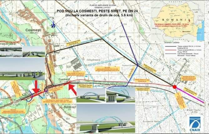 Miercuri, 6 aprilie 2022, a fost desemnat câștigătorul procedurii de atribuire a contractului având ca obiect “Pod nou de la Cosmesti, peste Siret, pe DN24, km 7+620” (inclusiv varianta de drum nou de aproximativ 5,6 km)”.