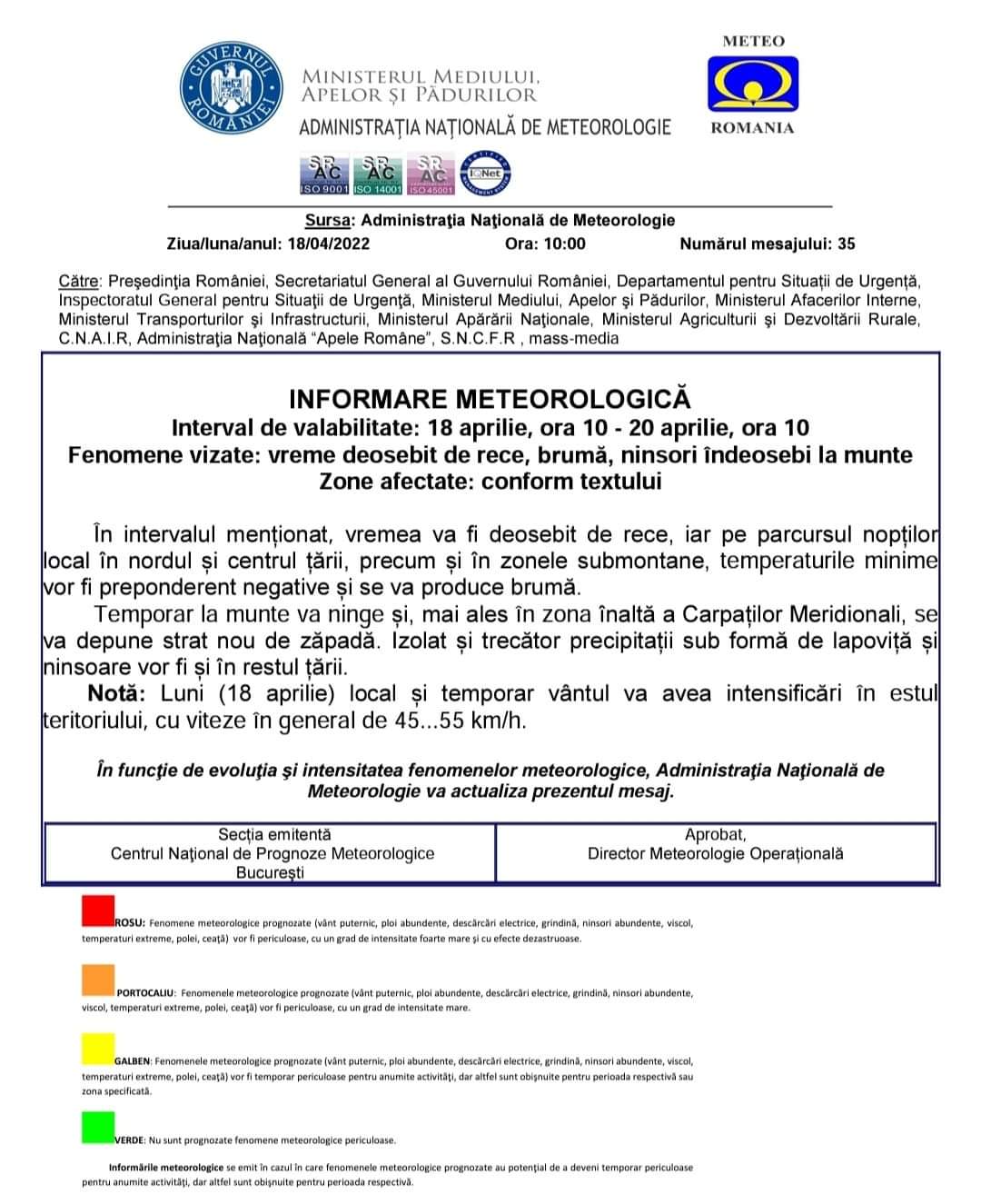 Interval de valabilitate: 18 aprilie, ora 10 – 20 aprilie, ora 10