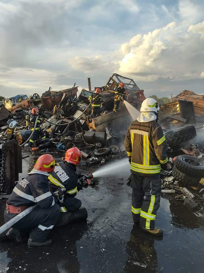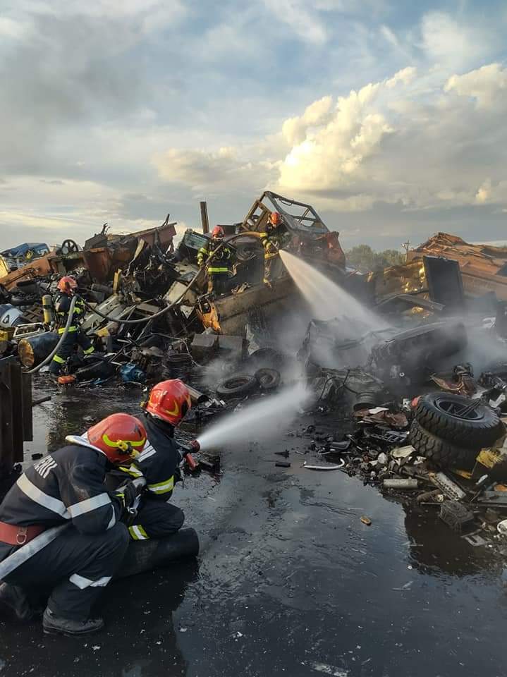 Pompierii vrânceni intervin în aceste momente pentru stingerea unui incendiu de cauciucuri la un centru de colectare a materialelor reciclabile din municpiul Focșani.