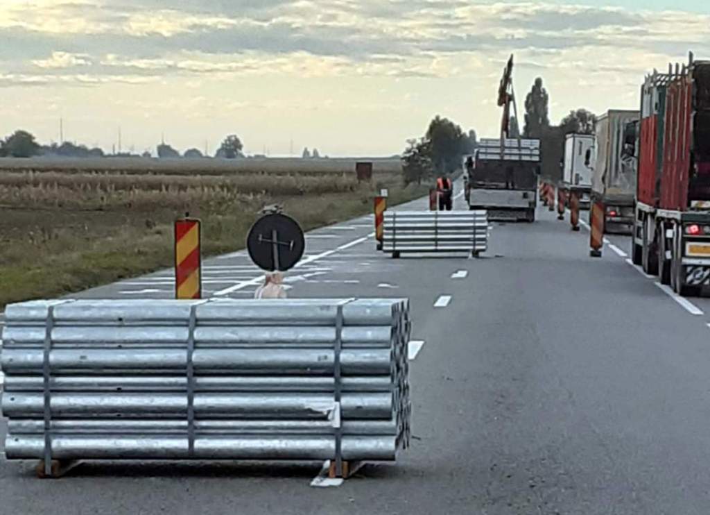 Montare parapet pe rulouri pe DN 2, în exteriorul localității Răcăciuni, județul Bacău. Circulați cu atenție!