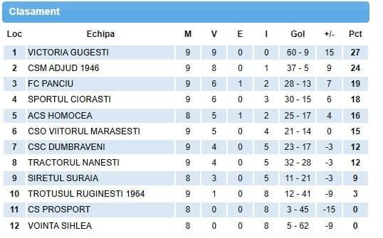 Victoria Gugești a câștigat derby-ul din Superliga Vrancei. Formația pregătită de Claudiu Ionescu a trecut cu scorul de 2-0 de CSM Adjud 1946. Lovitura de începere a partidei a fost dată de fostul jucător de la Foresta Gugești, Roșca Ionel, dar și de jucătorul junior al C.S.L Victoria Gugesti, Pencu Mihăiță.