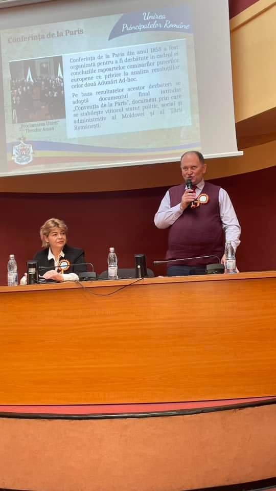 Invitat special, domnul prof. univ. dr. Florin Pintescu, decan al Facultății de Istorie și Geografie din cadrul Universității “Ștefan cel Mare” din Suceava, a susținut o comunicare științifică în care a evidențiat însemnătatea zilei de 24 Ianuarie.