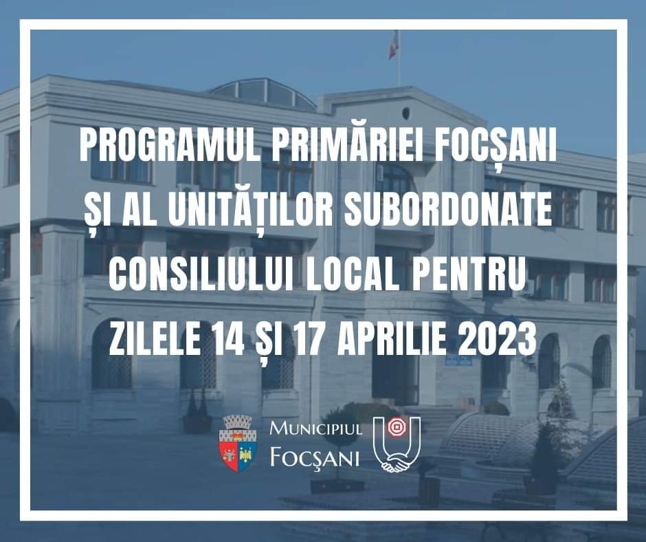 În zilele de vineri, 14 aprilie și luni, 17 aprilie 2023: se asigură serviciul de continuitate prin personalul de tură.