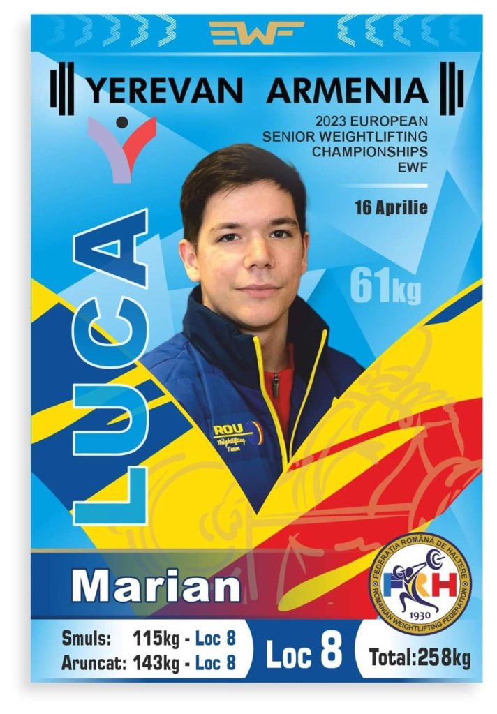 Tot în cadrul categoriei 61 Kg a concurat și Marian Luca, care a terminat pe locul 8 la smuls, aruncat și total cu 115 Kg, 143 Kg și 258 Kg.