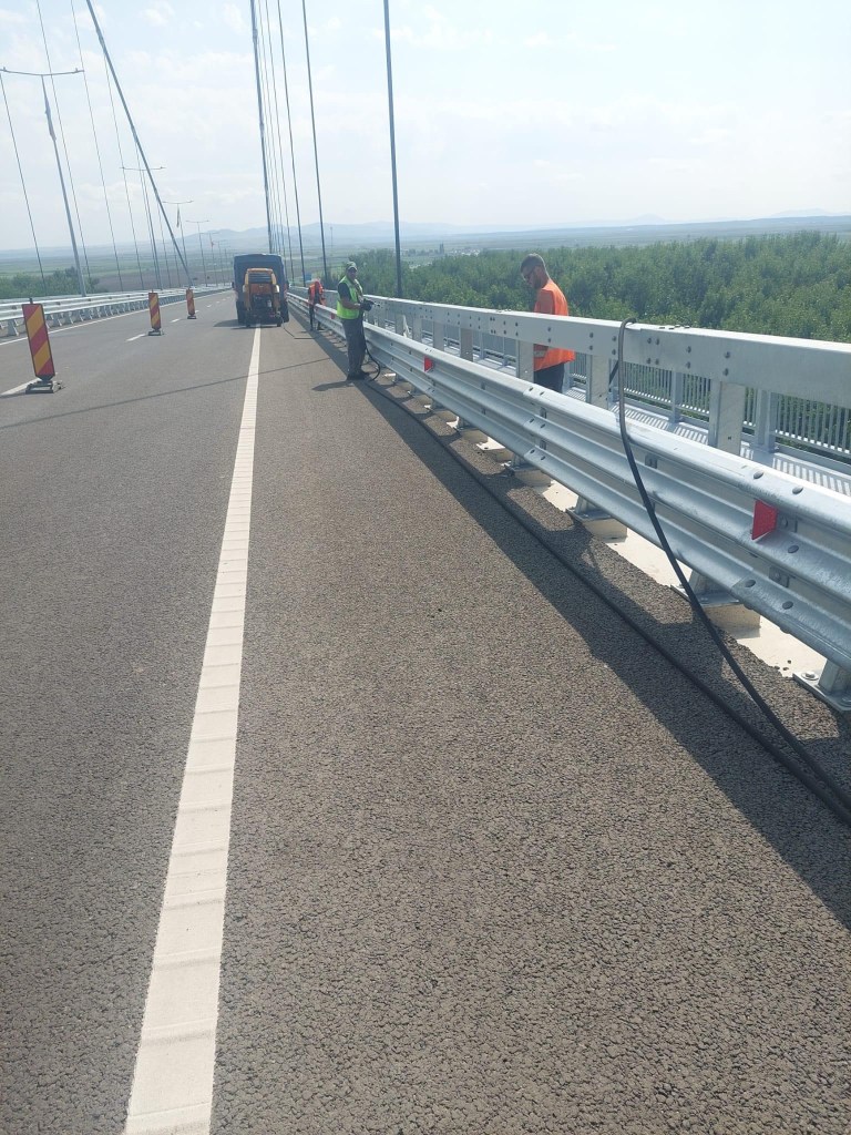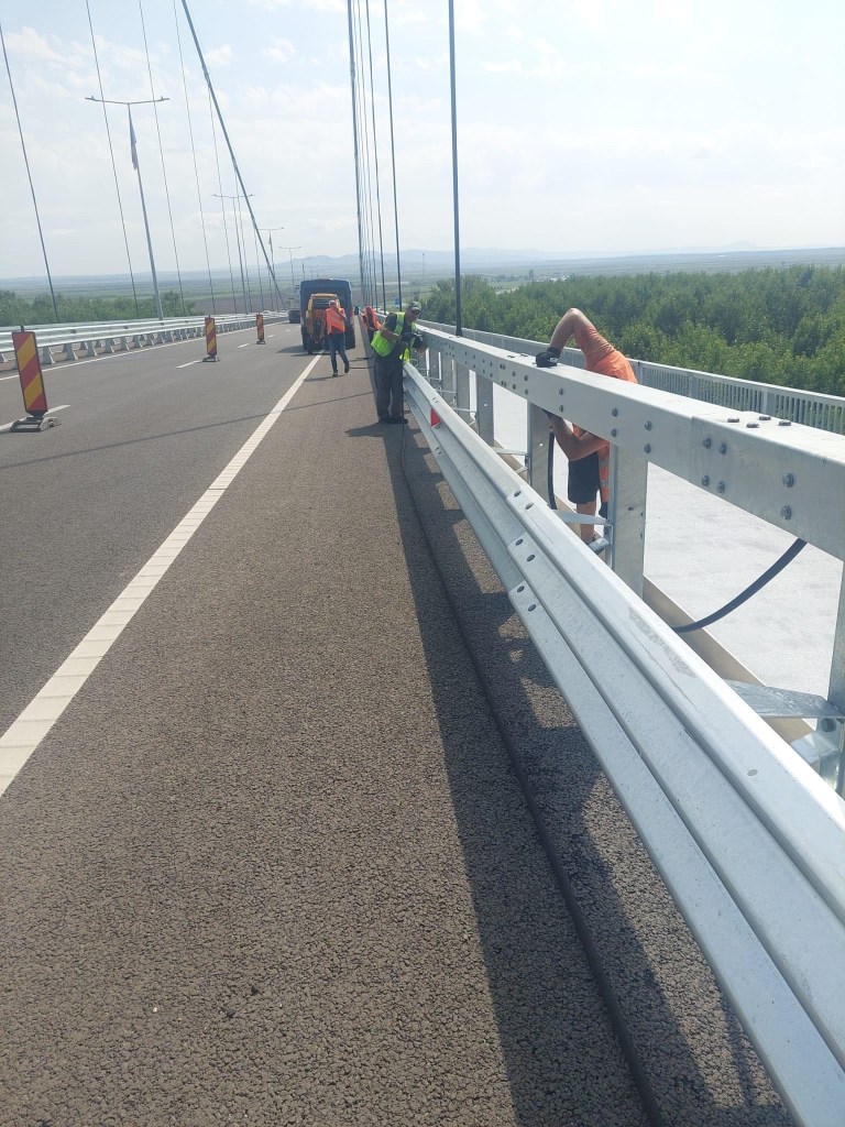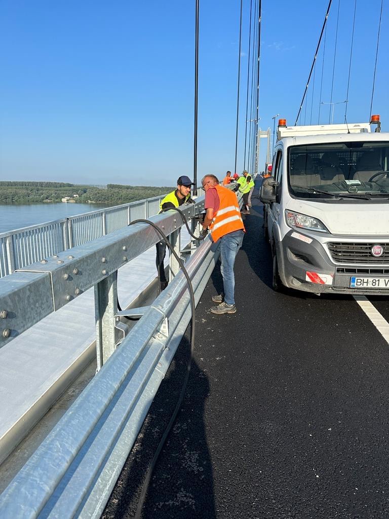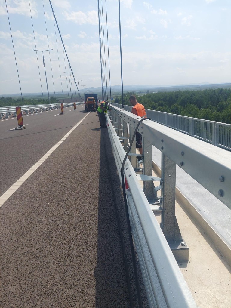 Continuă și astăzi verificarea șuruburilor parapetului montat pe Podul Suspendat peste Dunăre de la Brăila de către constructorul italian Webuild.