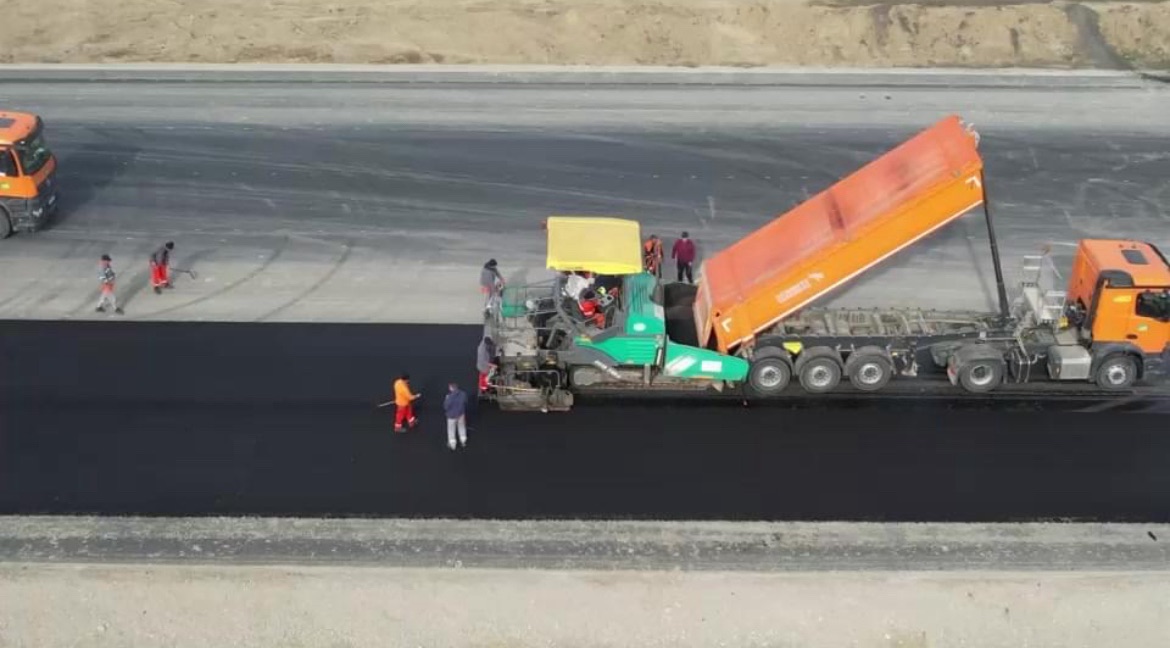 Astăzi, 29 Februarie, noi imagini postate de Compania Națională de Administrare a Infrastructurii Rutiere de pe tronsonul 4 al Autostrăzii A7, unde așternerea asfaltului este în curs.