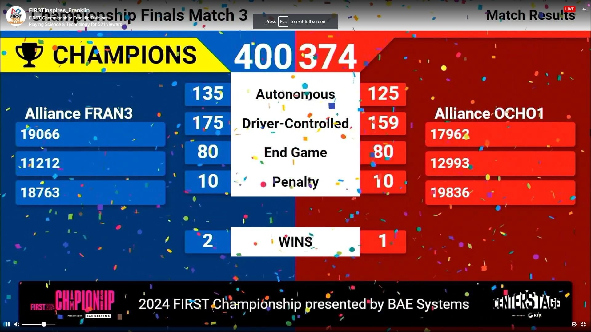 Finala competiției, unde 243 de echipe din toată lumea au participat, a fost una dramatică: Scor final 2 la 1, după ce au fost conduși cu 1 – 0. În meciul decisiv AI CITIZENS a învins cu 400 la 374.