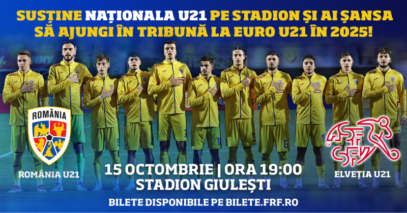 Ia-ți bilet la meciul decisiv cu Elveția U21 de pe bilete.frf.ro sau direct din aplicație și intră în concurs!