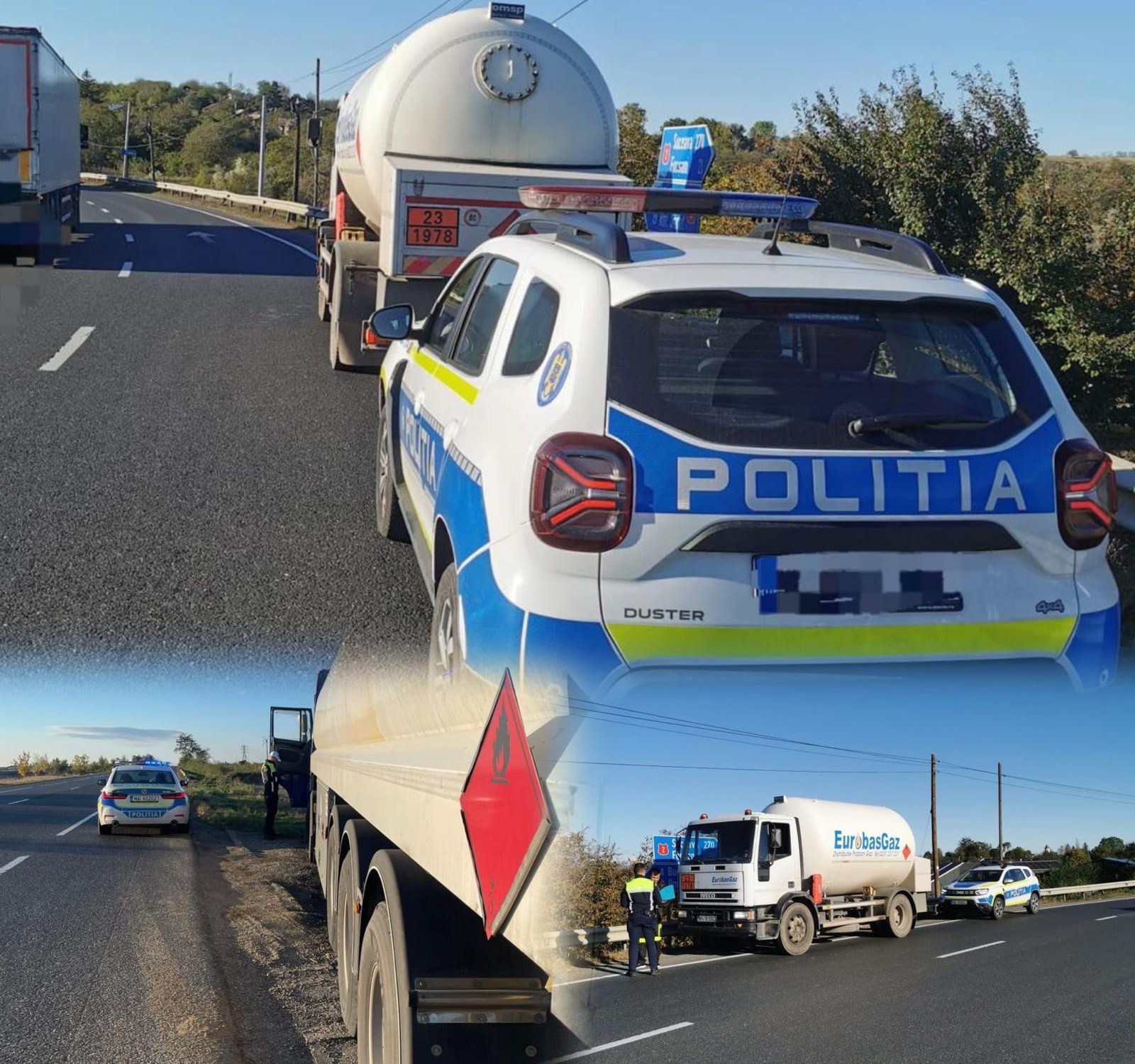 Polițiștii rutieri din cadrul Serviciului Rutier Vrancea acționează pentru verificarea legalității transporturilor rutiere de mărfuri periculoase și verificarea normelor rutiere de către conducătorii acestor vehicule.