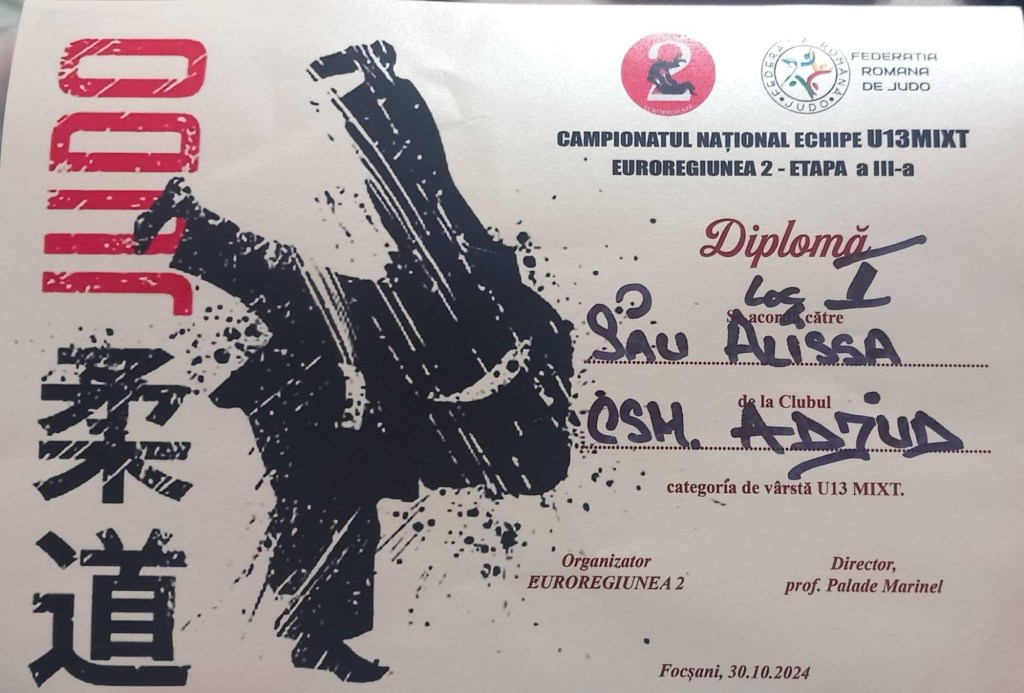 În data de 30 octombrie, echipa de Judo a clubului CSM ADJUD 1946 a obținut locul 1 în cea de-a 3-a etapa a concursului de Euroregiune din cadrul Campionatului National mixt pe echipe.