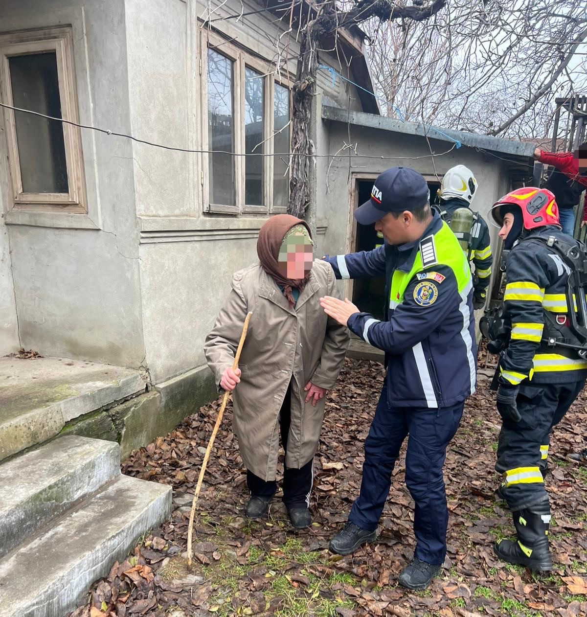 Polițiștii, ajunși primii la fața locului, au constatat că cele sesizate se confirmă, iar femeia de 74 de ani se afla singură în locuință, iar fără a ezita, aceștia au pătruns în locuință, evacuând-o de urgență.