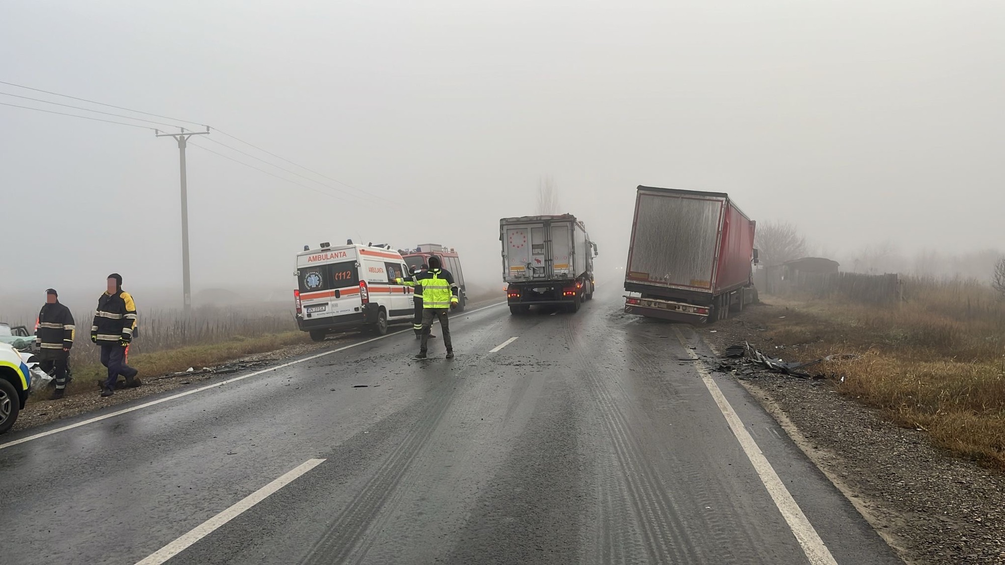 Din primele informații, a avut loc o coliziune între un autocamion și un autoturism.
