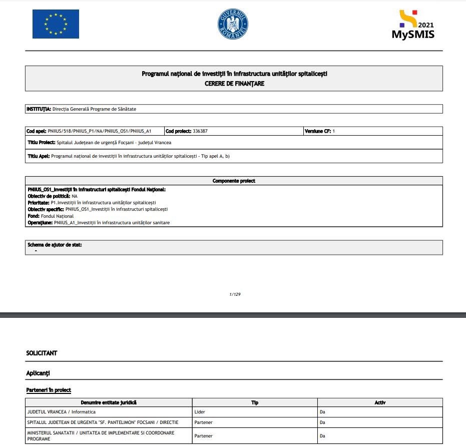 Anunțul vine de la noul președinte al consiliului Județean Vrancea, Nicușor Halici, care a explicat că echipa care a lucrat la proiectare a finalizat proiectul tehnic, consultanții și echipa din Consiliul Județean au muncit non-stop și în această dimineață au reușit să finalizeze întreaga documentație, în același timp au și reușit să încarce cererea de finanțare în platforma Programului Național de Investiții în infrastructura unităților spitalicești, pentru a asigura finanțarea efectivă a construcției noului spital, care are o valoare totală de peste 250 milioane de euro.