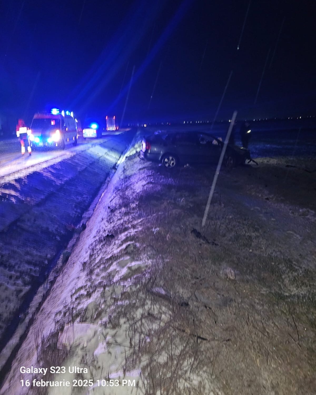 În jurul orei 22.30, am fost sesizați prin apel 112 cu privire la faptul că pe DN2 E85, în comuna Garoafa, sat Bizighești, județul Vrancea, pe sensul de mers Bacău către Focșani, un autoturism a ieșit în afara părții carosabile.