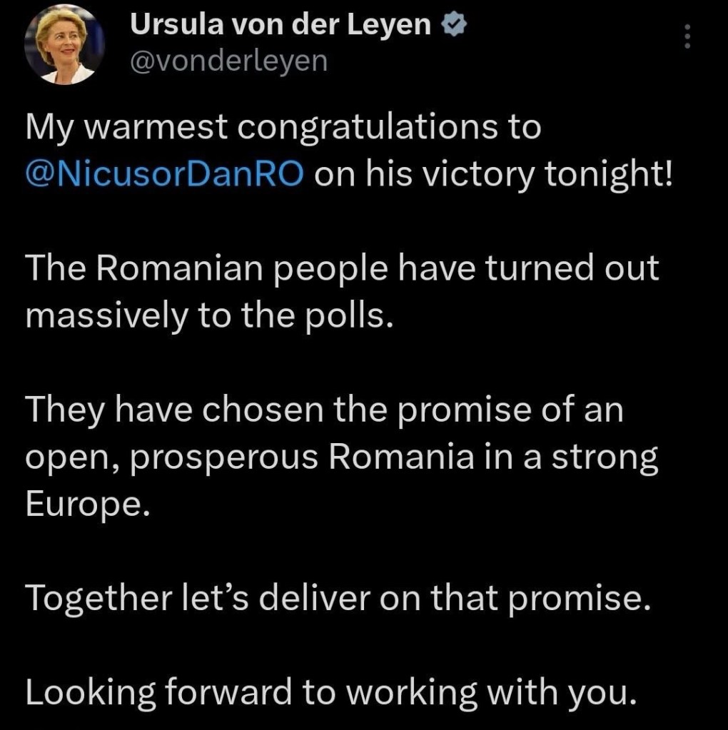 Mesajul Ursulei Von der Leyen pentru Nicuşor Dan