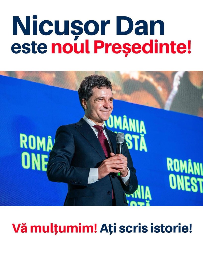 „Cele mai calde felicitări lui Nicușor Dan pentru victoria sa din această seară!