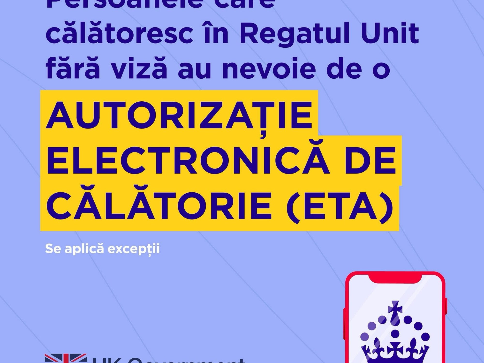 Mai multe informații despre ETA sunt disponibile aici: https://www.gov.uk/guidance/apply-for-an-electronic-travel-authorisation-eta