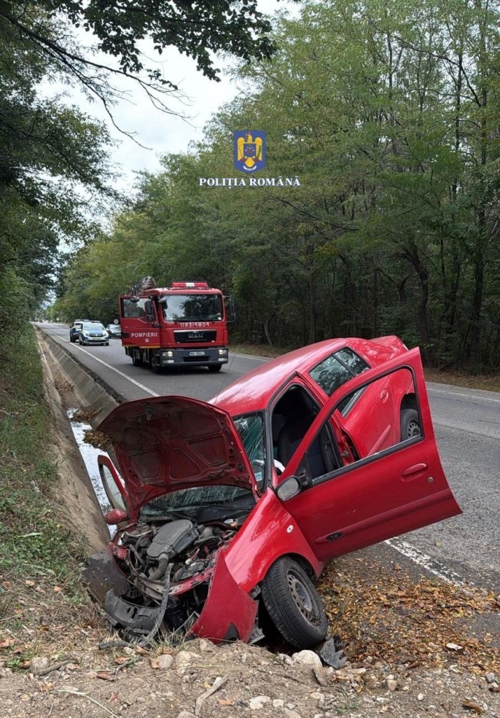 Din primele verificări efectuate de polițiștii ajunși la fața locului a rezultat faptul că un autoturism a părăsit partea carosabilă, în urma impactului două persoane fiind rănite.