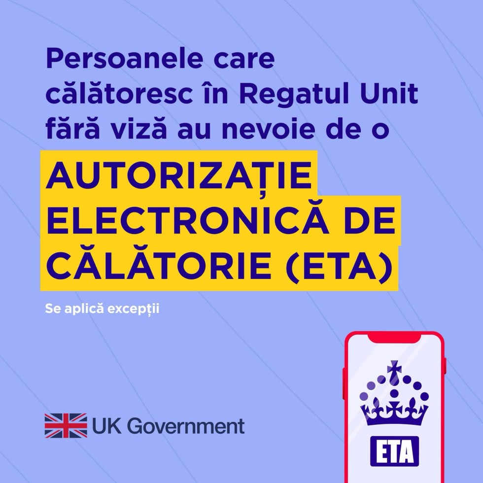 Românii care vizitează Regatul Unit al Marii Britanii și Irlandei de Nord (UK) au nevoie de o Autorizație Electronică de Călătorie – Electronic Travel Authorisation (ETA)