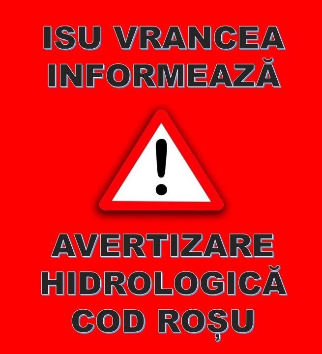 Avertizare hidrologică – COD ROŞU emis de I.S.U.