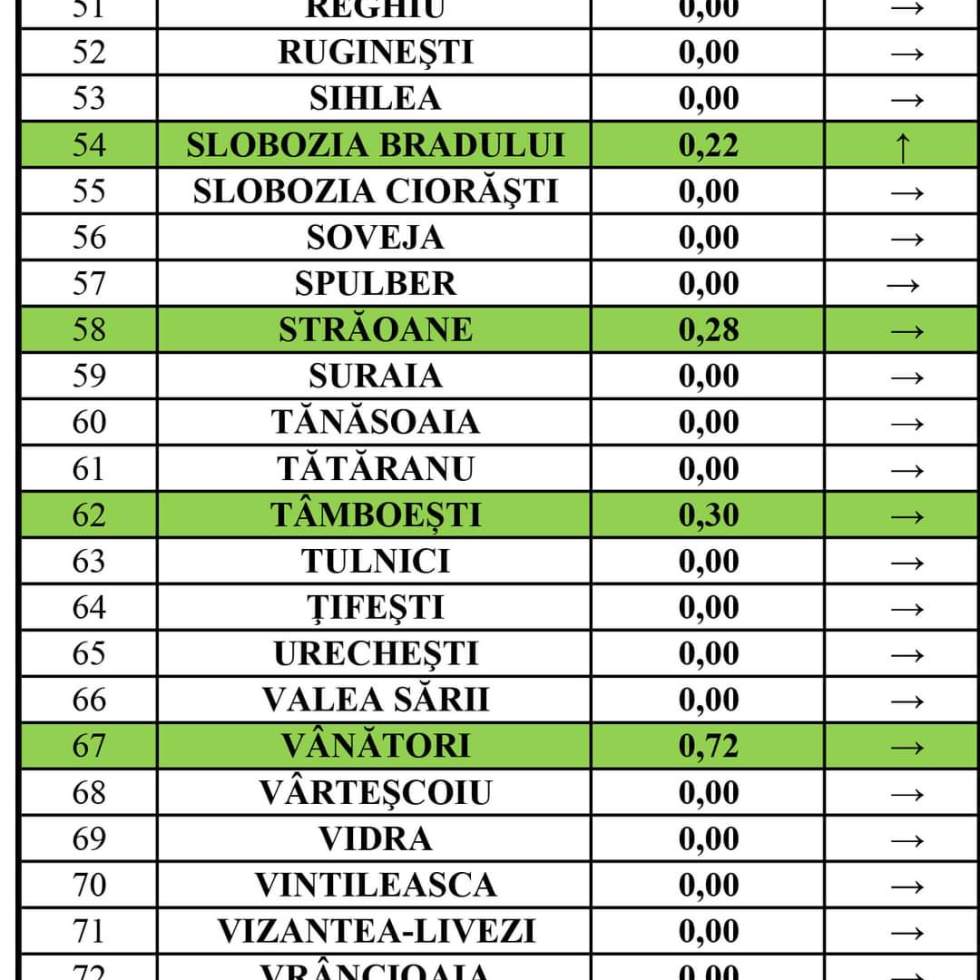 Rata de infectare cu COVID-19 în județul Vrancea – 0,18 la mia de locuitori