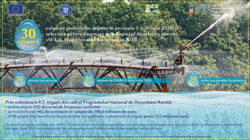 30 de proiecte vor primi finanțare pentru investiții în infrastructura de irigații.