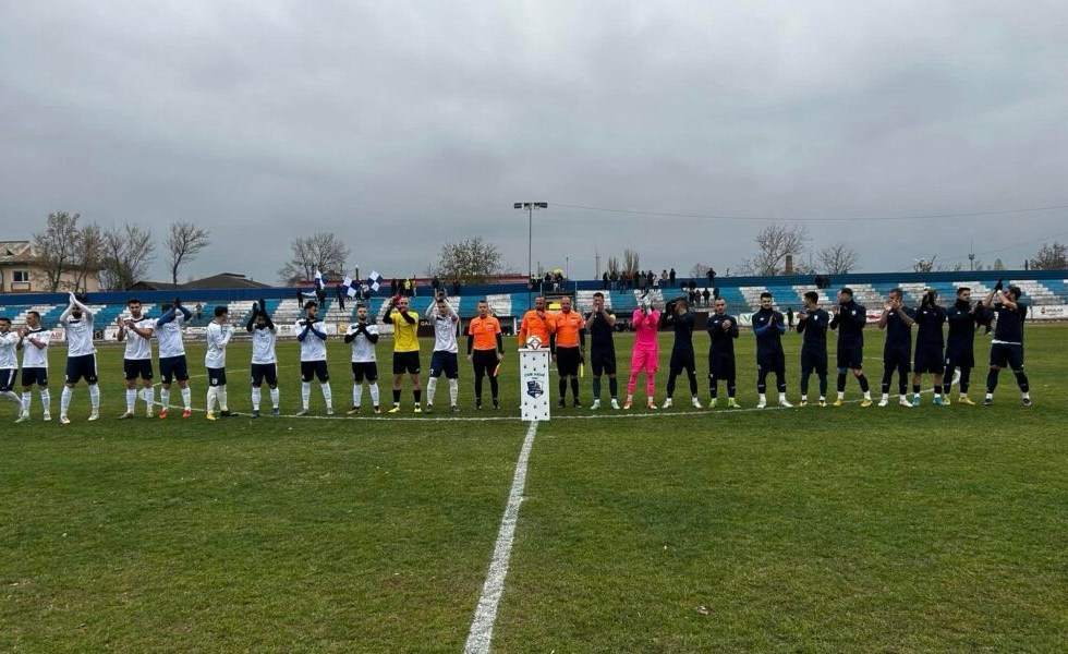 Brigadă de arbitri din Liga I la derby-ul Superligii Vrancei dintre CSM Adjud și Victoria Gugești.