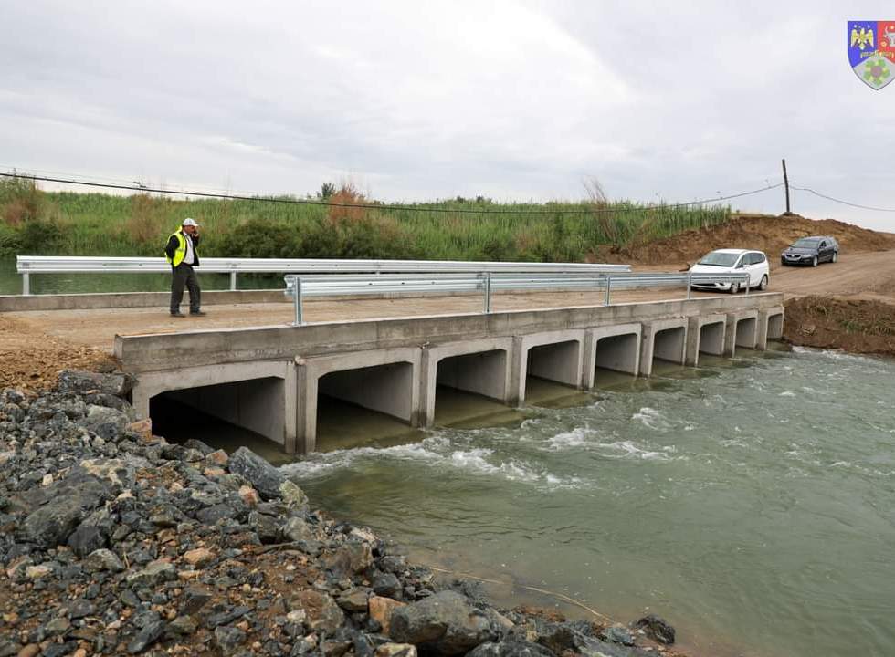 S-a redeschis circulația pe DJ 204D, la Vadu Roșca, pe un pod provizoriu, cu restricție de tonaj!