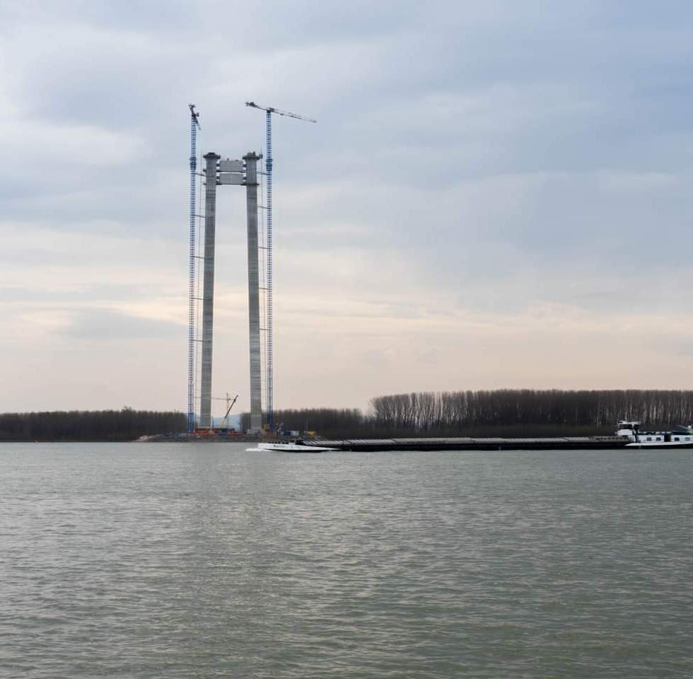 Lucrările de ridicare şi montare a cablurilor la podul suspendat de la Brăila afectează parţial navigaţia pe Dunăre